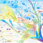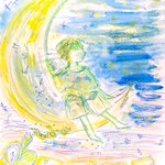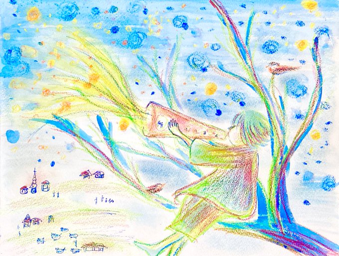#絵柄が好みっていう人にフォローされたい #絵描きさんと繋がりたい #イラスト好きさんと繋がりたい #クレヨン画 #水彩画 昨日は雨で星が見えなかった。けど、この子がいれば星が見えたかも…… タイトル「星を奏でる少年」