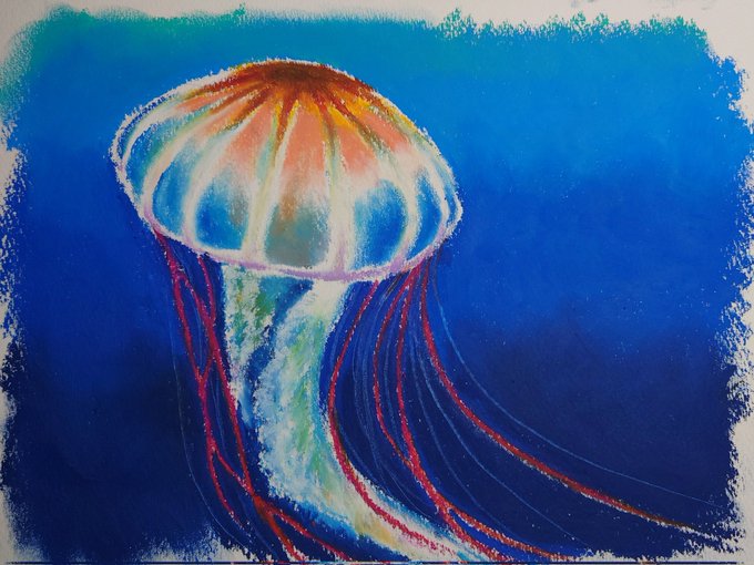 #大きな独り言 #クレヨン画 #illustration 「赤い月の日」 完成✨ こういうの描きたくて描けなかったから描けて嬉しい(*´ω`*) クレヨンと相性いいのかもしれない(気付き) twitter.com/miyu_shimada/s…