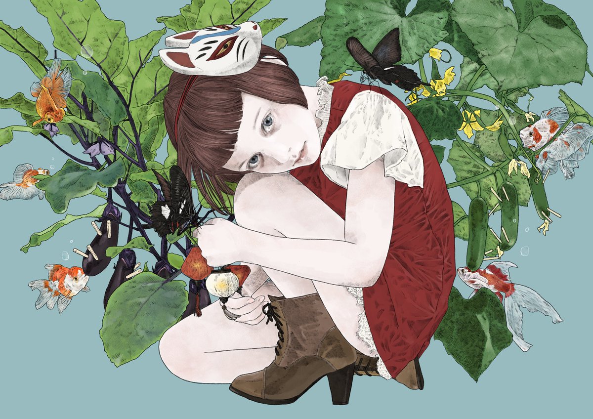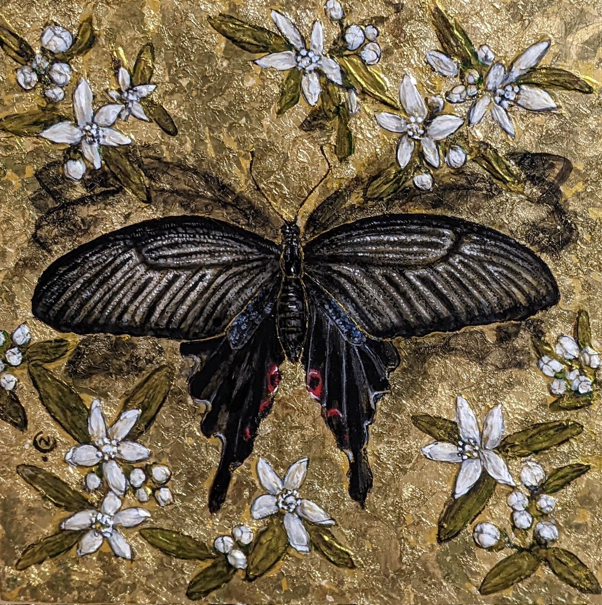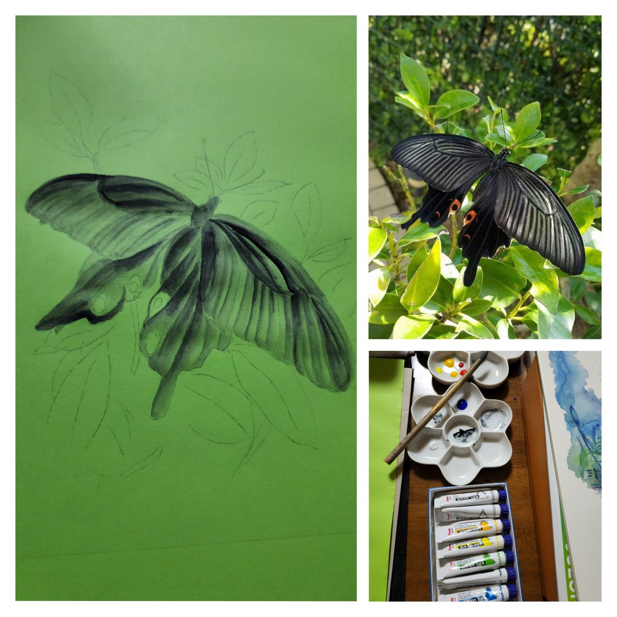 雨上がりの空、ゆったりと回遊していたクロアゲハ🦋 #illustration #イラスト #booowho_illustration #butterfly #蝶 #クロアゲハ #Papilioprotenor #black #黒