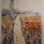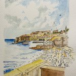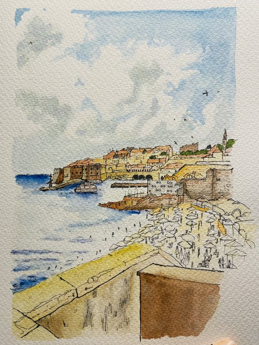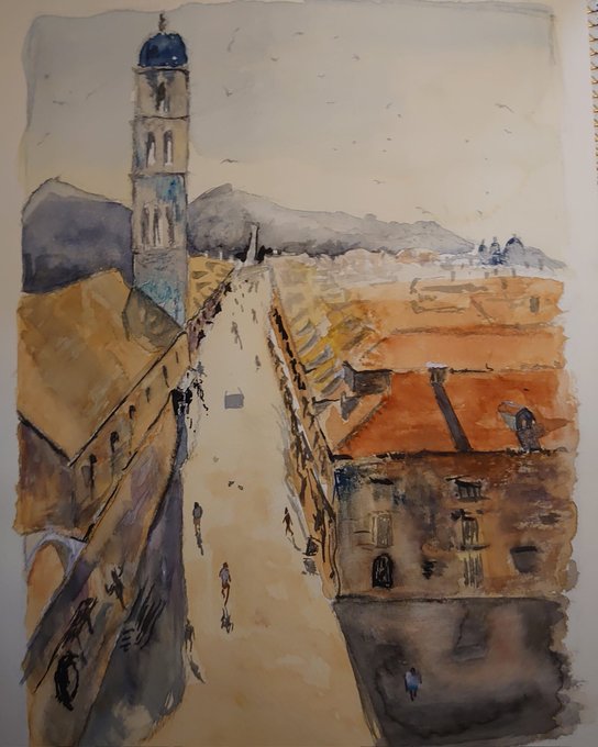 お絵描き83日目🎶 上からの構図の練習をしました🤩クロアチア城塞都市 【褐色の町】 笠井先生の本より... #笠井一男 #水彩画 #クロアチア #watercolorpainting #お絵描き好きな人と繋がりたい #上から見た構図