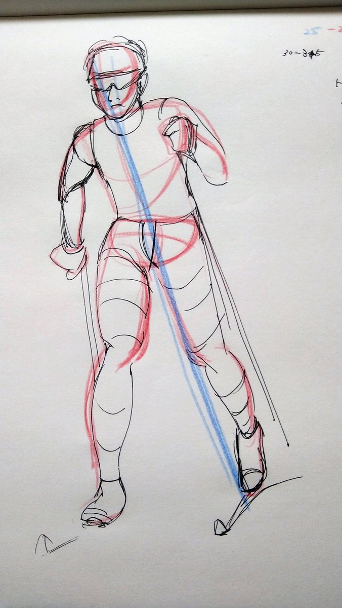 『クロスカントリー』 正面は難しいですね… 骨盤の向きが前傾なのに当たりで失敗… 後ろに回る右腕も💦 #クロッキー #スケッチ #クロスカントリー #お絵描き好きさんと繋がりたい #イラスト好きさんと繋がりたい #アトリエの系譜