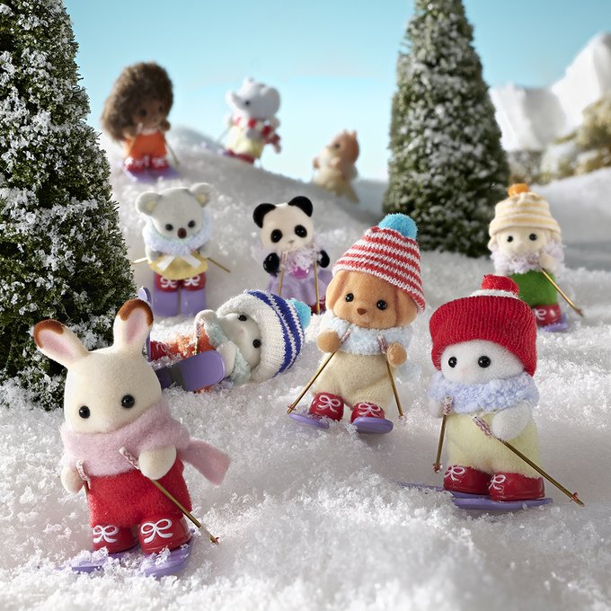 赤ちゃんたちがクロスカントリーに挑戦🎿 トップを華麗に滑っていくのはショコラウサギのクレム✨ 2番手だったマシュマロネズミのアルバートは転んじゃったみたい…! 坂道に苦戦している子もいますね💦 みんな頑張って! #シルバニアファミリー #シルバニア #シルバニア赤ちゃん #クロスカントリー