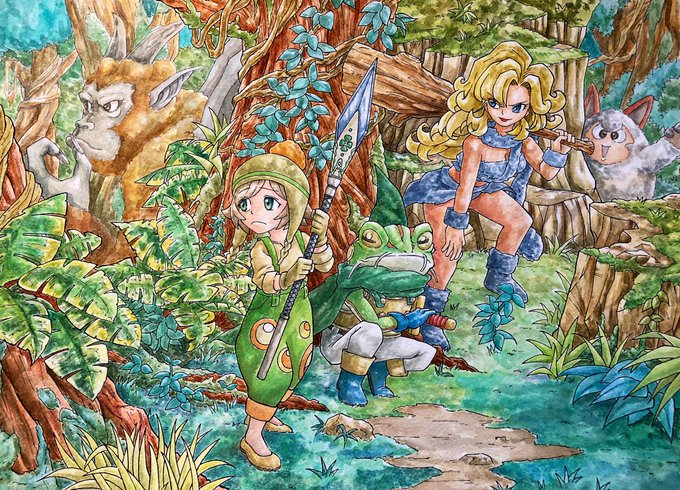 プレイしてくれてありがとう🍀🍀 クリアおめでとう🎉🎉 皆で記念撮影です✨✨ @0f0salad #産直さらだあ〜と #透明水彩 #イラスト #クロノトリガー #イラスト好きな人と繋がりたい #絵柄が好みって人にフォローされたい #絵師さんフォロバ100 #Watercolor #illustration
