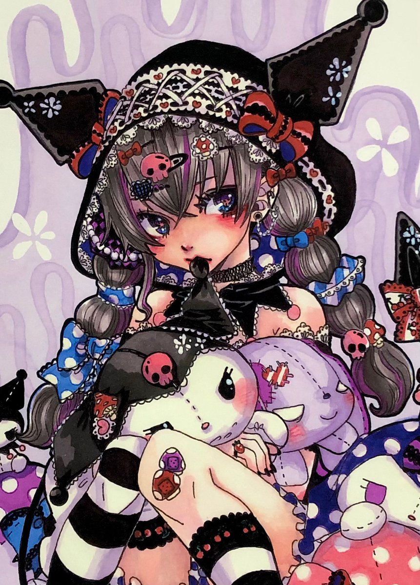 森永のBlackMoonクッキーもめちゃうま。 癖になりすぎてヤバイモッ( ˙༥˙ )モッ ほむらちゃんともぐもぐクロミちゃん🍭 #魔法少女まどかマギカ #クロミちゃん #BlackMoon #イラスト好きと繋がりたい