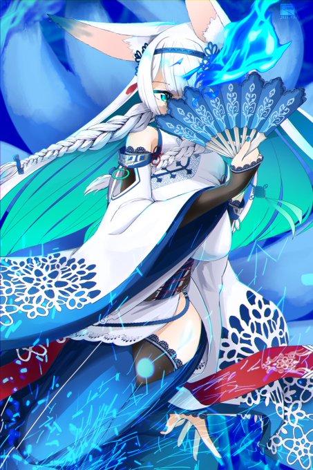 過去絵再掲 クローバーシアターより、葛夜(かつや) モフモフしっぽ。日本語版出るまでずっと「くずよ」だと思ってた... 大陸版のイラコンに出品した絵でした #クローバーシアター #四叶草剧场