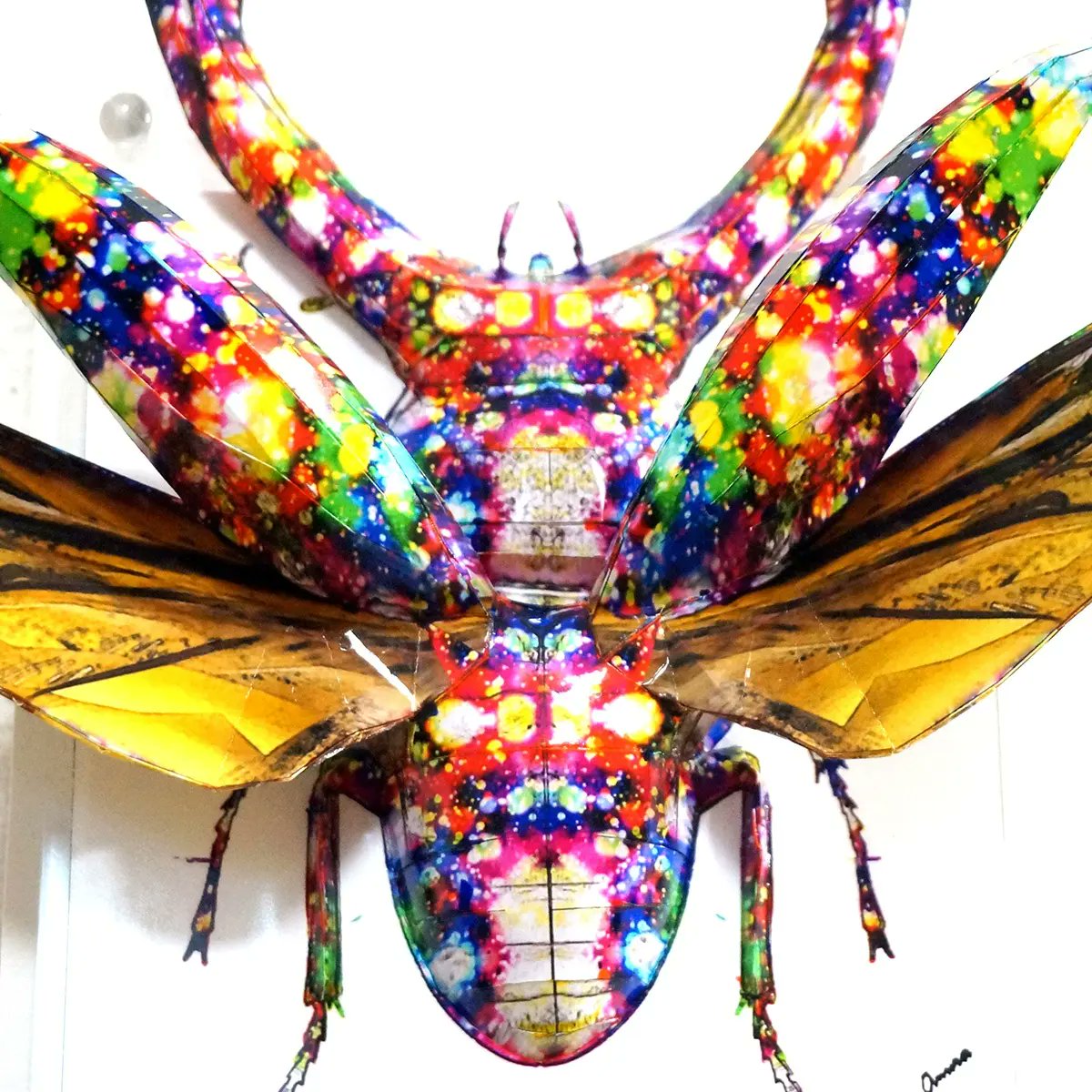 クワガタの新作が完成しました。 「煌めくクワガタは大きな羽を広げる」 ED:1/20をthisisgalleryにて先行発売しております。 thisisgallery.com/product/55985 #thisisgallery #paperart #popart #ペーパークラフト #アートのある暮らし #ポップアート #昆虫アート #クワガタアート #大村洋二朗