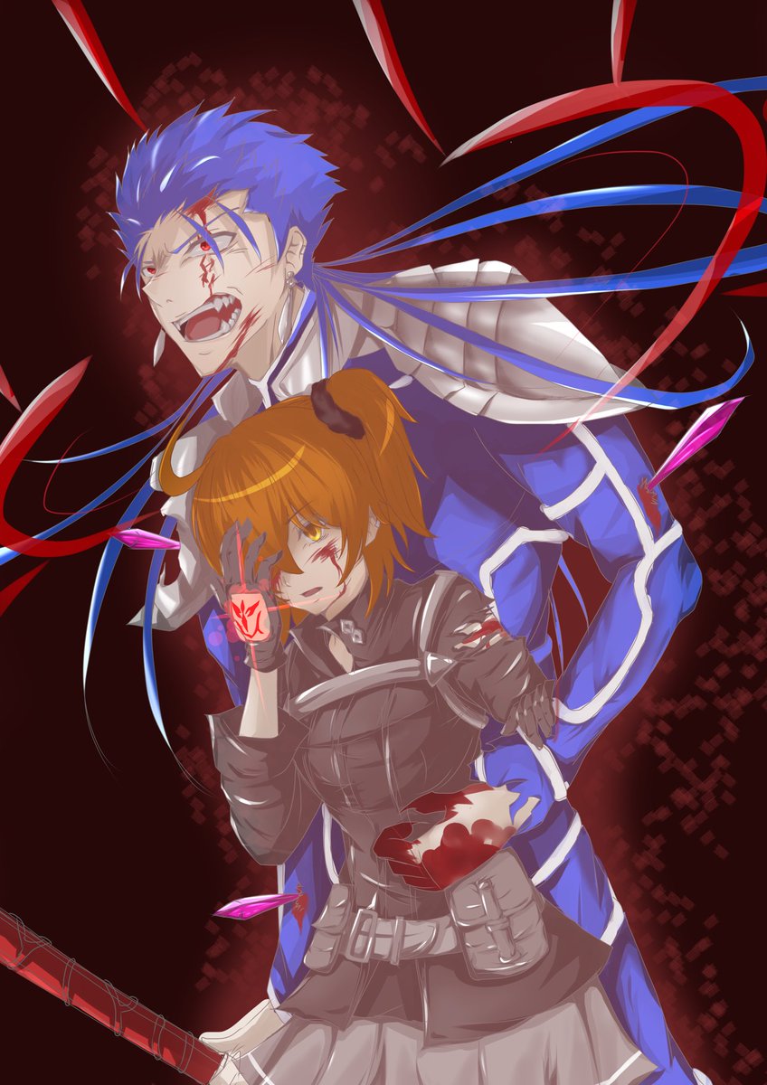 ク『貴様ぁぁぁー!!許さねぇ……!』 ぐ『くー…ダメ……』 #FGO #FGO好きな人と繋がりたい #クーフーリン #ぐだ子 #イラスト練習中 #イラスト好きと繋がりたい #絵描きさんと繋がりたい