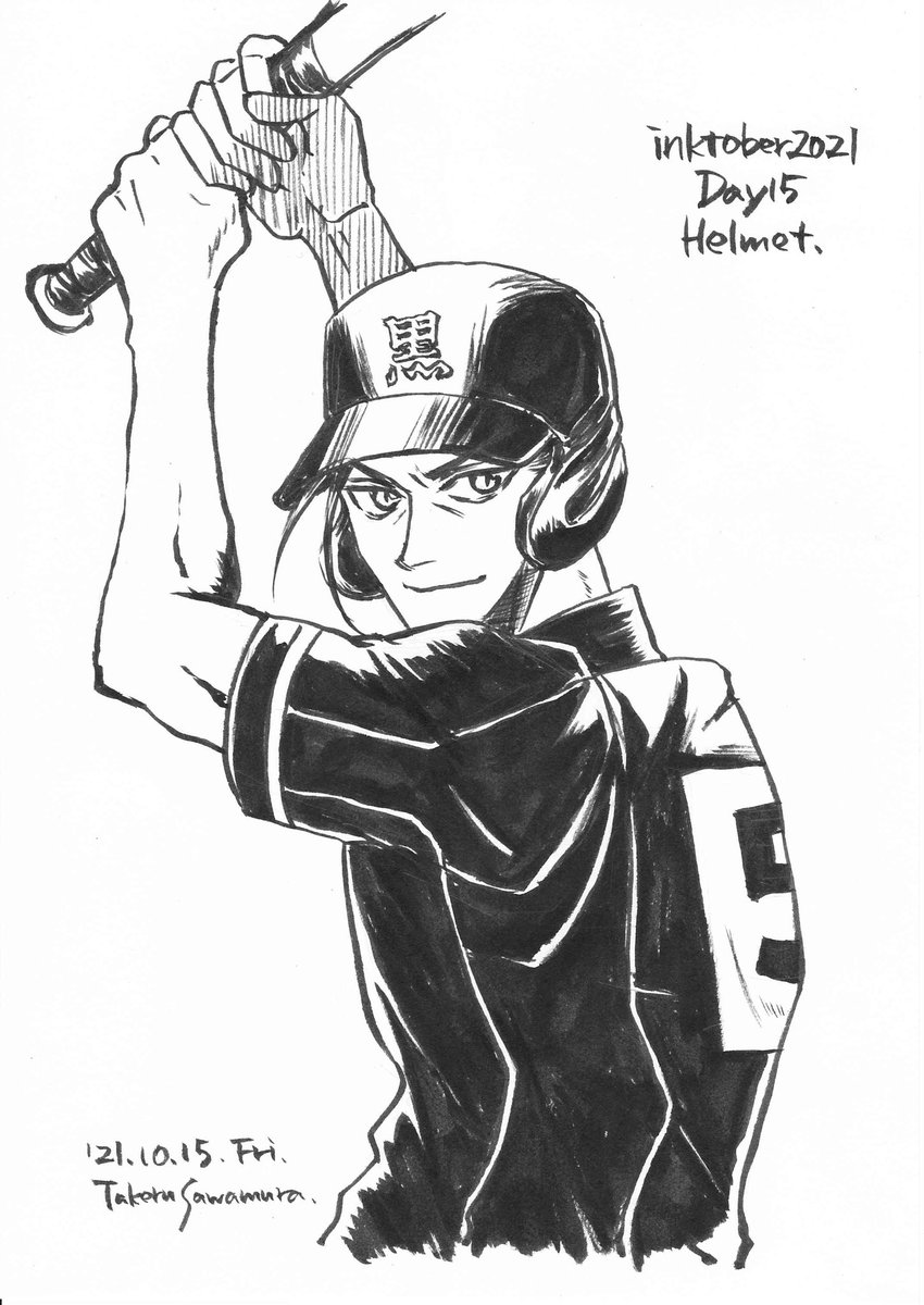 day15 helmet 広島カープは赤ヘル軍団って言うから、あれヘルメットでいいんだよね?…と調べもせず描いちゃった😅 インクトーバーも半分まで来ましたよっと。 #inktober2021 #inktober2021day15 #インクトーバー #クーロンズボールパレード #クーロンズ_FA