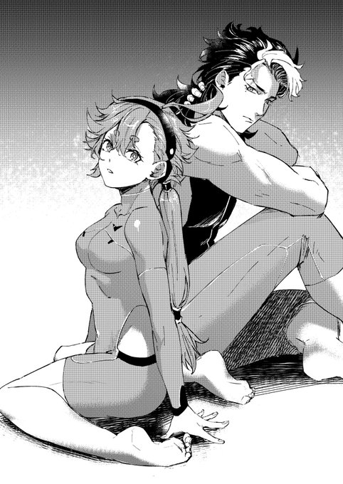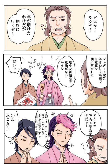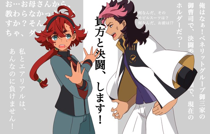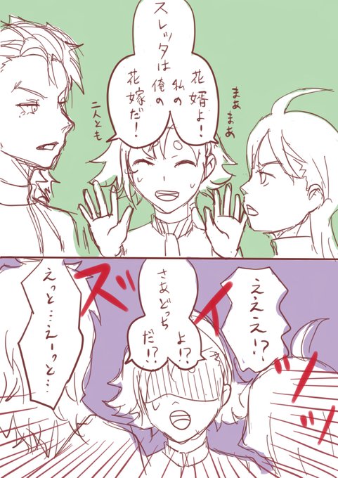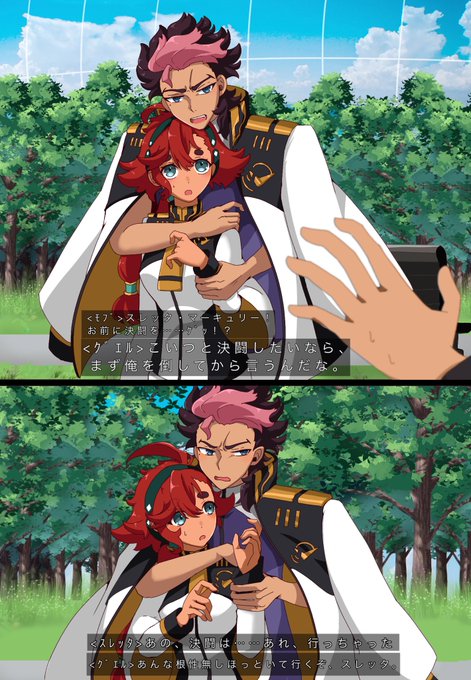 正月に描いたWホルダー時空のグエスレ妄想落書き 頭回らん状態で描くと体のバランスとか色々おかしくなる そしてなんで苦手なのに背景描いちゃったんだろう #グエスレ twitter.com/takenoko8413/s…