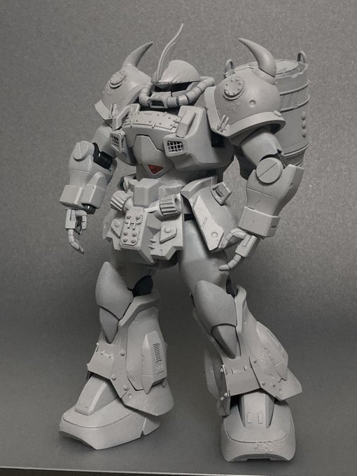 まだ多少ベタつくもののようやく削ったりヤスリがけしたり出来るレベルまでエポパテが固まってくれたのでグフの作業再開。その結果基本工作が終わりました。#ガンプラの画像を貼るとRTされると聞いて #グフ #旧キット