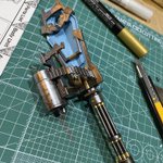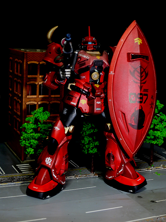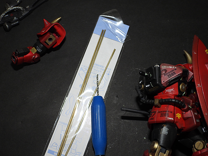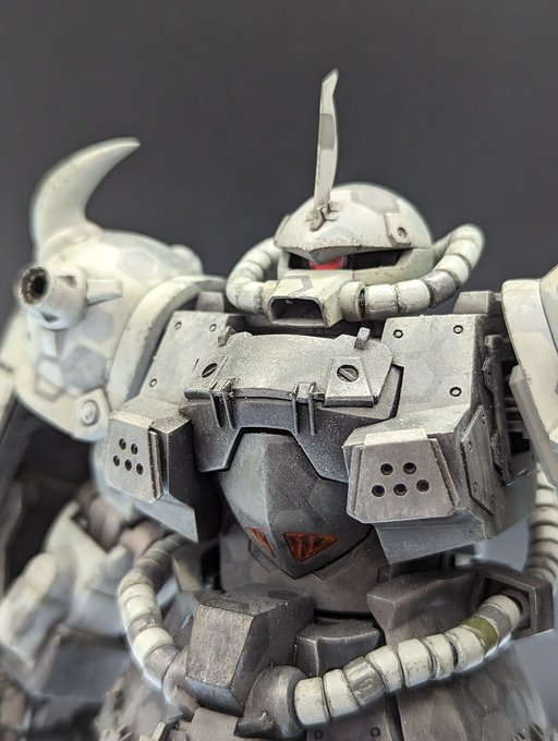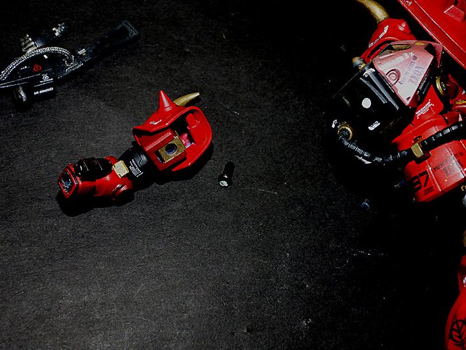 完成から一日足らずで右肩を骨折させました (ノω`;) 例によってピンバイスでホジホジ→真鍮棒を叩き込んで(言い方!🤣)瞬着剤を塗って接続~ (≧▽≦) そして完治がてらテクスチャーを簡単に組んで撮影してみたり( ̄+ー ̄)ニヤリ #ガンプラの画像貼るとRTされると聞いて #グフカスタム