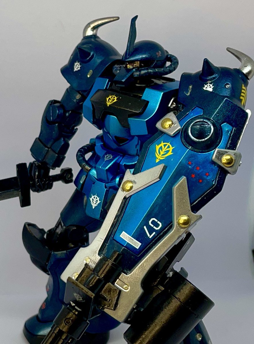 グフカスタム完成✨ ガンダムマーカーと水星塗料だけで全塗装したんだけど…控えめに言ってイケメンすぎんかグフカスタム君! 続く(1/5) #ガンプラの画像を貼るとRTされると聞いて #ガンプラ #グフカスタム