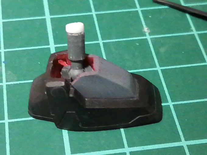 #ガンプラ #グフフライトタイプ #ガンプラ好きと繋がりたい #ガンプラの画像貼るとRTされると聞いて サーベル追加のついでに、軸を1mm 延長して足首の関節位置調整中。 アンクルアーマーが邪魔で前後には余り動かなかったので。