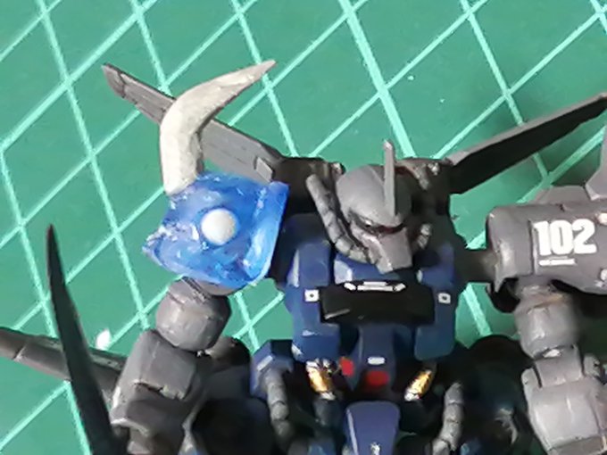 #ガンダムアーティファクト #ガンプラ #グフフライトタイプ #ガンプラ好きと繋がりたい #ガンプラの画像貼るとRTされると聞いて 親指作って、軽く塗装してみた。 これで墨入れしたらOKかな?