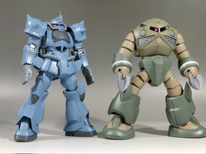 #自作品のお気に入り四天王の画像を貼る_見た人もやる 今年はこの4作がとても重要で、自分の中のザクの理想系に近づけられたことと、色味風合い的に自分の作風の方向性を見出せて感慨深いものがありました🥹 #ガンプラ #MSV #ザクマインレイヤー #グフ #グフ重装型 #ミキシングビルド