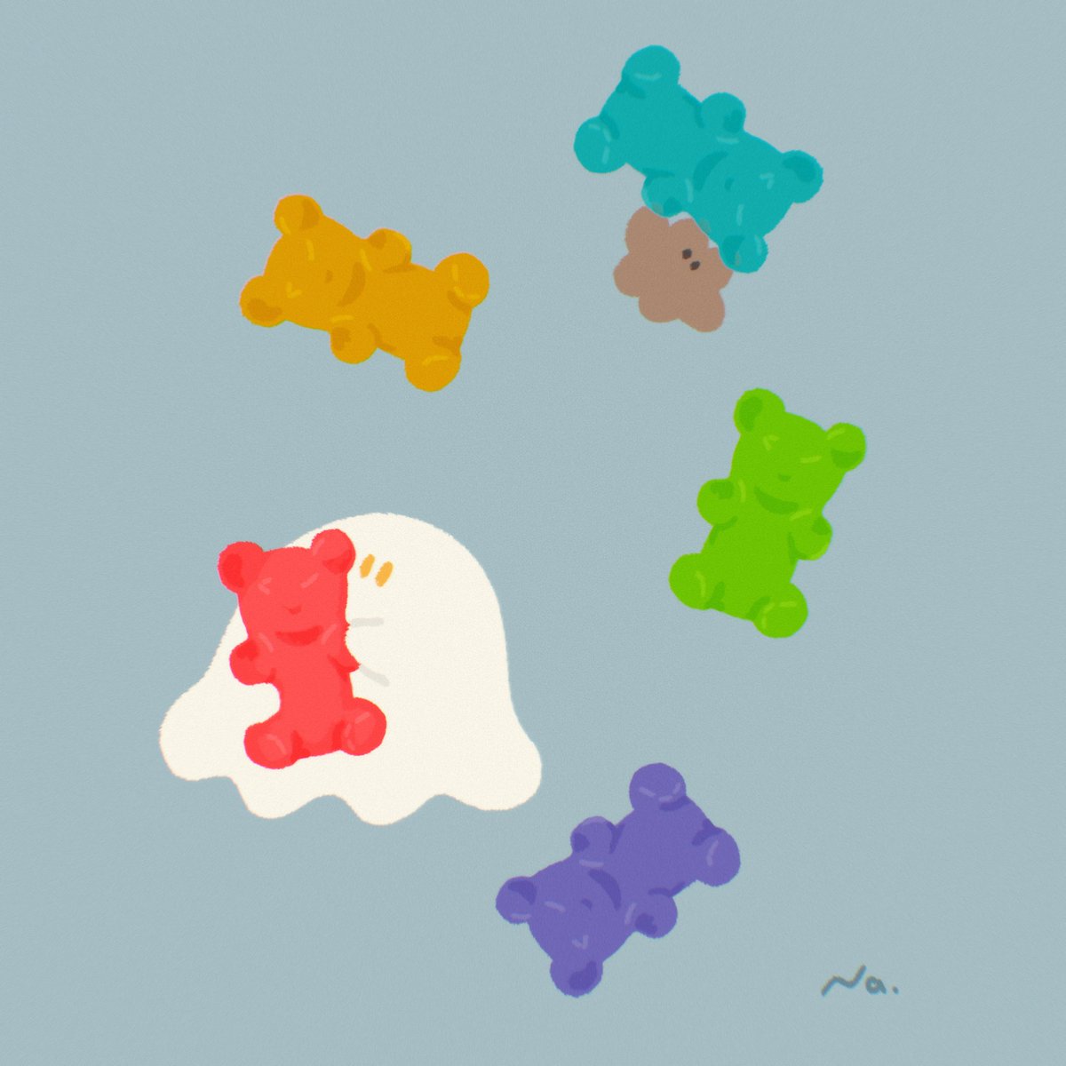 グミって色んな種類があって目でも楽しめますよね〜🤍 こちらは後でスタッフ(おにぎり)がすべて美味しくいただきました🌟 #ゆるいイラスト #ユニプラ絵 #イラスト #イラスト好きな人と繋がりたい #illustration #秋の創作クラスタフォロー祭り #絵柄が好みって人にフォローされたい #グミの日
