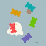 🧀70日目🧀 ⳹ 今日は #グミの日!⳼ ワン太郎型グミ🐻🐻🐶🐻🐻 最近グミにハマっています😋 みなさんのおすすめのグミはありますか? もしよかったら教えてください〜✨ #ワン太郎 #ゆるいイラスト #食べ物イラスト #illustration #絵描きさんと繋がりたい