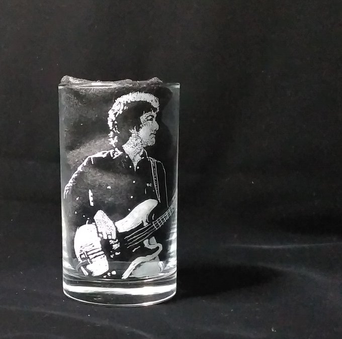 今日の彫り成果。今月はFreddie月間にするつもりだけど、今日は特別。 #ベースの日 だからね。 #グラスエングレービング #glassengraving #QUEEN #queenfanart #johndeacon #JohnDeacon