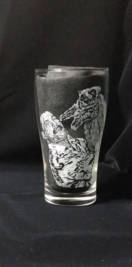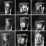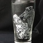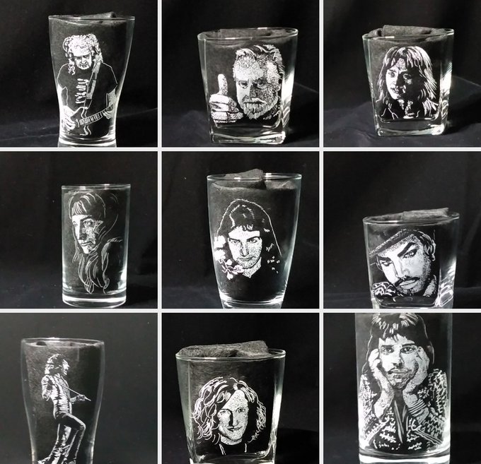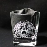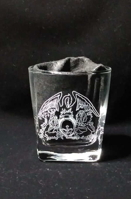 今日の彫り成果。ひとつのグラスにQⅡジャケと旧クレストを彫りました。QUEENfanart展京都の時に来てくれた職場の人に(バタバタしててほったらかしてたから😅) #グラスエングレービング #glassengraving #QUEEN #queenfanart