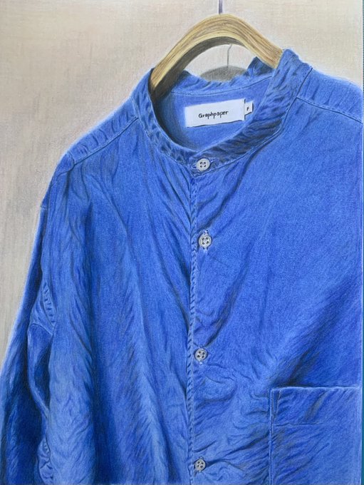 去年の12月頃に描いた洋服の絵👕✨ グラフペーパーというブランドの「バンドカラーシャツ」を描いてみました😅 ゴリゴリ塗っていくと、どちらかというとオックスフォードシャツみたいに💦 洋服系は勉強しなくてわ…😵💫 #色鉛筆画 #色えんぴつ #バンドカラーシャツ #グラフペーパー #Graphpaper