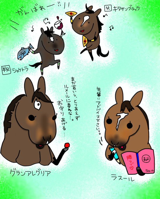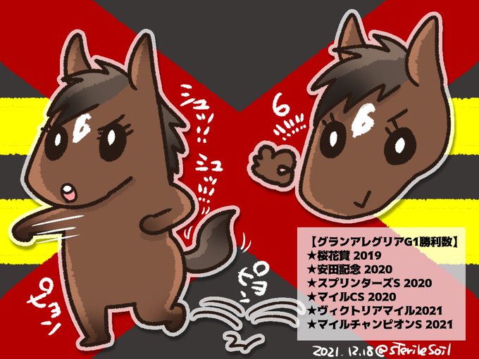 #今年も残りわずかなのでお気に入りの4枚を貼る #でんわくんとサリオス のシリーズとか、オリジナルとか、#馬場場術 絵とか、#グランアレグリア ちゃんの「あれ本当に適正距離だったの?」案件とか(笑) 今年は少ないな…書いてる量