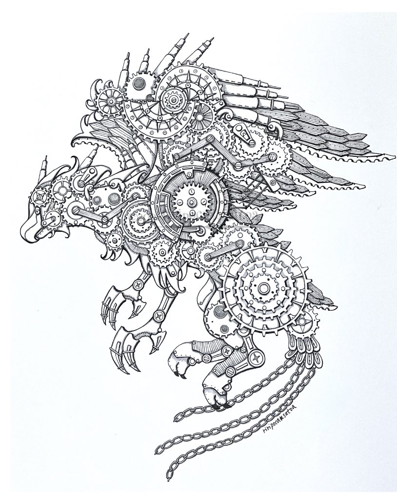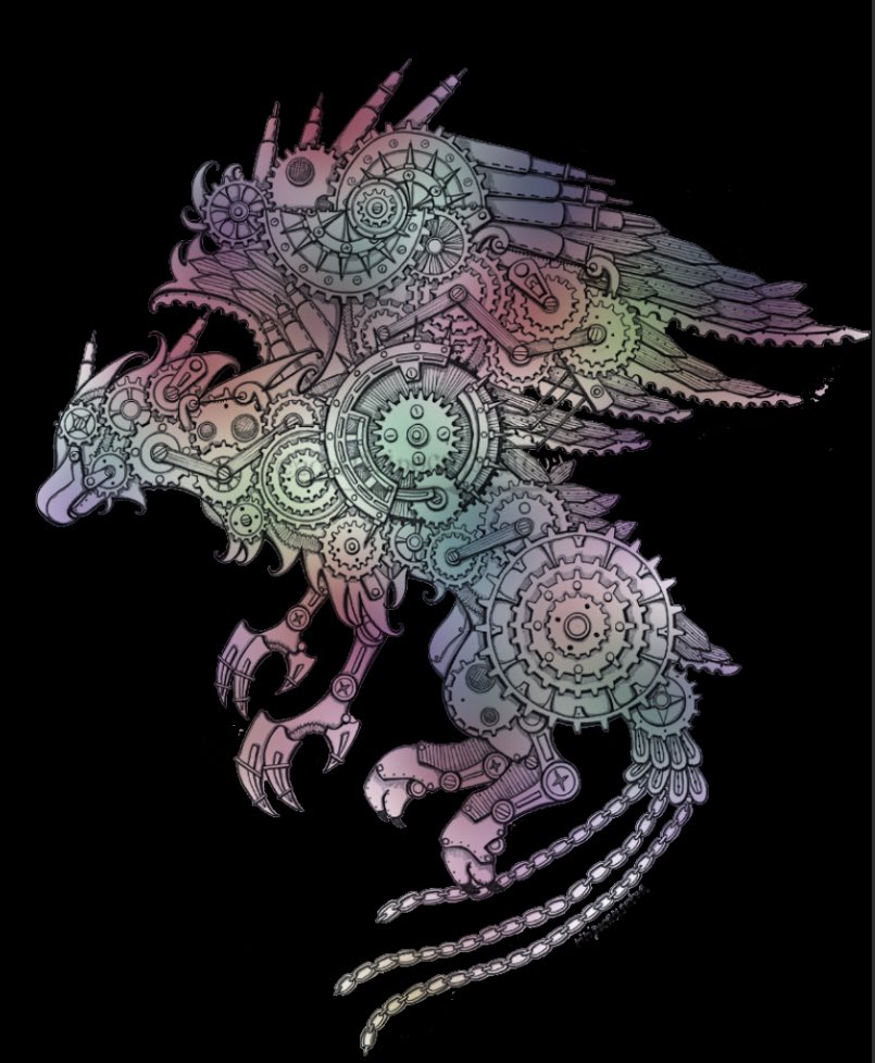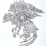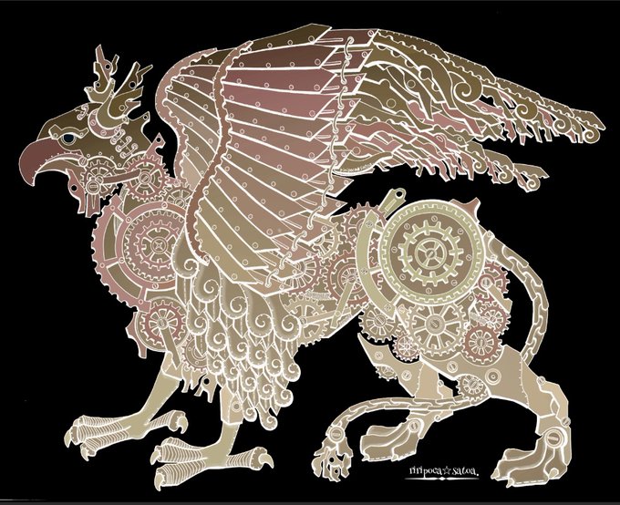 おはようございます(о´∀`о) 今日もよろしくお願いします♪ ⚙グリフォン⚙ #創作 #スチームパンクイラスト #歯車イラスト #ペン画 #グリフォン #絵柄が好みっていう人にフォローされたい