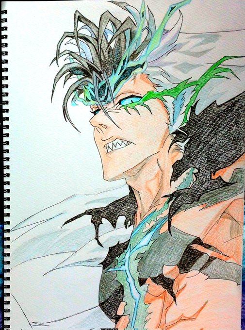 こんにちは(^o^ゞ 最近、忙し過ぎて絵を描く時間ないので、過去絵をあげて描いた気になってみます(^o^ゞ #ブリーチ #グリムジョー #アナログ絵 #模写 #絵描きさんと繋がりたい #みんなで楽しむTwitter展覧会