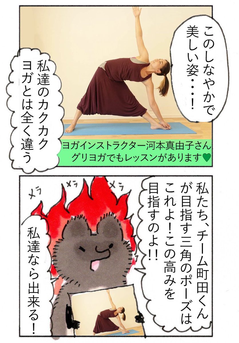 10月7日木曜日の町田のお天気情報です。 今年は #グリヨガ 野津田でリアル開催😆✨✨ gyf2019.yogi2.com という訳で、たぬこ達、ヨガの練習を始めました💖 今年は #三角のポーズ を極めるみたいです📐✨✨ #町田 #町田くん #漫画が読めるハッシュタグ #イラスト