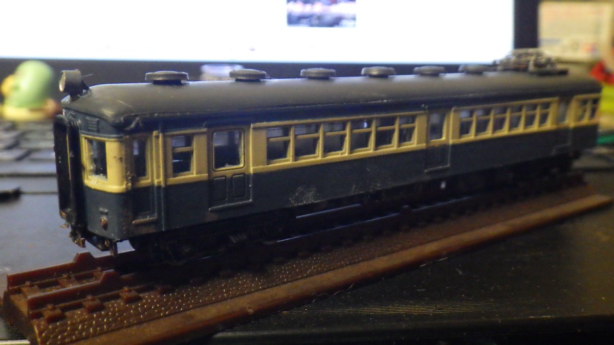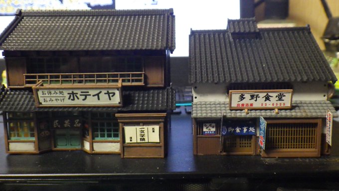 #今月作ったプラモ晒そうぜ 今月は鉄道模型尽くしで ・クモハ51系荷電併結飯田線編成(クモユニ81+クモハ51×2+サハ47+サロ46) ・むしこ作りの商家 ・切妻造りの商家 #グリーンマックス #鉄道模型