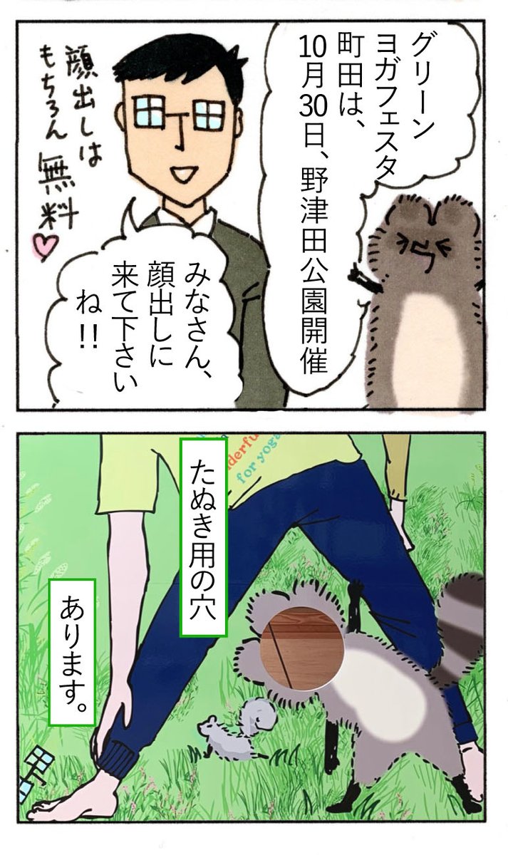 10月26日火曜日の町田のお天気情報です。 ちょっと組み立てに手間取って、漫画の方が遅くなってしまいました😆✨ 10月30日野津田公園開催の #グリーンヨガフェスタ町田 さんとコラボ顔出しパネル届きました~‼ 入場、顔出し、無料です😆 #町田 #町田くん #漫画が読めるハッシュタグ #イラスト
