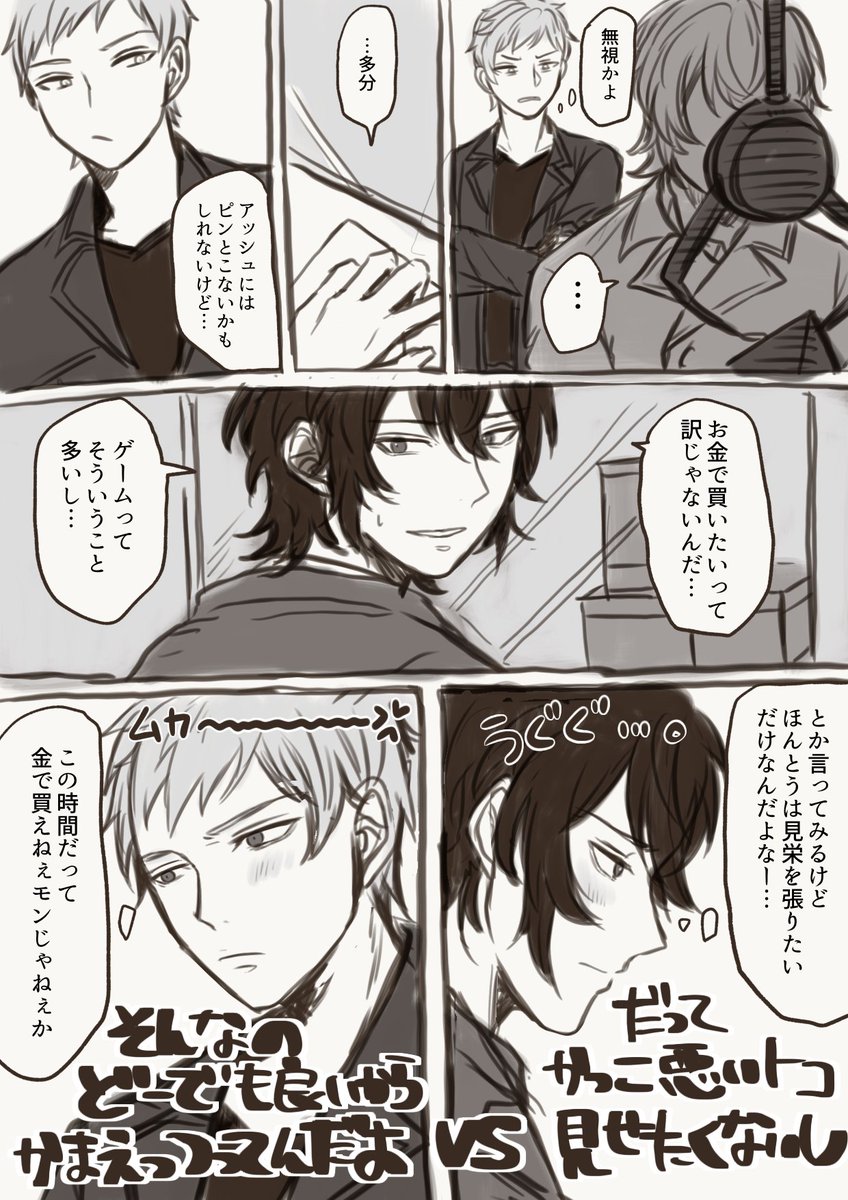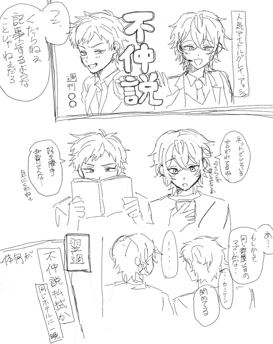 お題「2-2」お借りしました!といいつつも、あらすじ出る前にアがメインという情報だけで想像して描いた2-2の妄想です!ほんへとは一切関係ございません 絵も字も内容も粗雑ですまんやで #グレアシュ版ワンドロワンライ