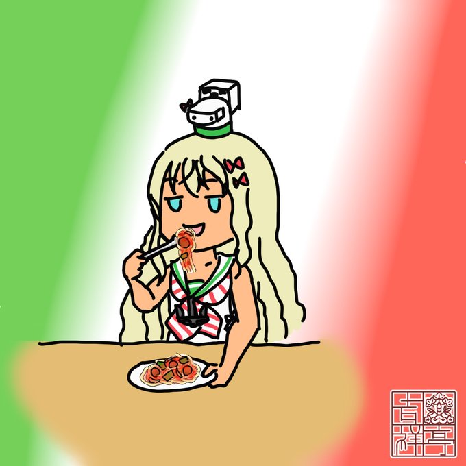 イタリア料理の日につき、ナポリタンを食べるグレカーレ …日本イタリア料理協会が定めてるらしいので間違いじゃないはず #艦これ版深夜の真剣お絵描き60分一本勝負 #艦これ版真剣お絵描き60分一本勝負_20220917 #グレカーレ