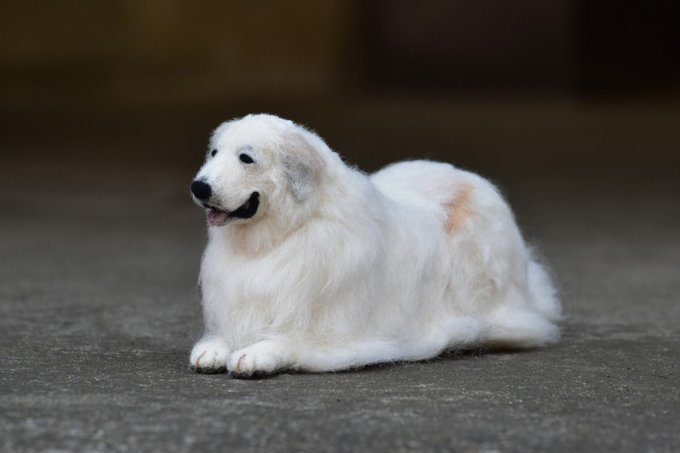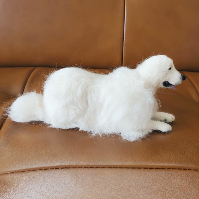 の植毛を追加して完成です。 優しい顔のレオンさんが出来上がってよかったです。制作するときに実際に会わせていただいて写真をたくさん撮らせていただけたので作業が進めやすかったです。 #羊毛フェルト #グレートピレニーズ #オーダーメイド #felt #needlefelt