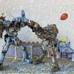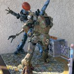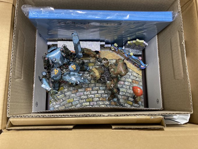 北Qに向けてディオラマの梱包。ポーズも微調整しました。固められる関節は固めてしまおうかな。 #模型 #プラモデル #ディオラマ #マシーネンクリーガー #maschinenkrieger #横山宏 #kowyokoyama #グローサーフント #北Q州展示会