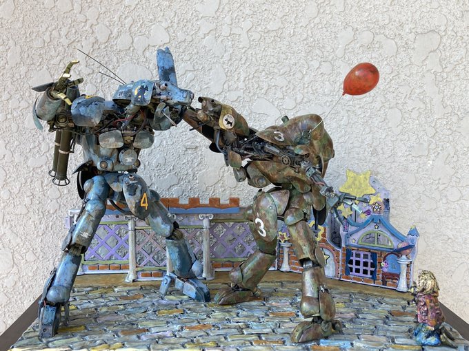 「老犬対狂犬」 ポーズ調整、屋外撮影してきました。 #模型 #プラモデル #筆塗り #マシーネンクリーガー #maschinenkrieger #横山宏 #kowyokoyama #グローサーフント #ディオラマ