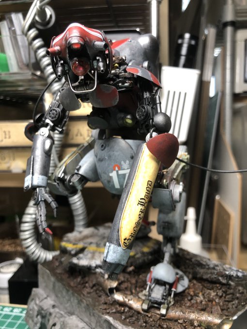 イベントで受けた刺激に浸りつつ、北Qに向けて作業再開です。こいつも合同展示会に間に合わせてやりたかったな。もう少し・・・のはず。出来たら北Qに持参します。 #模型 #プラモデル #マシーネンクリーガー #maschinenkrieger #横山宏 #kowyokoyama #グローサーフント #筆塗り #北Q州展示会