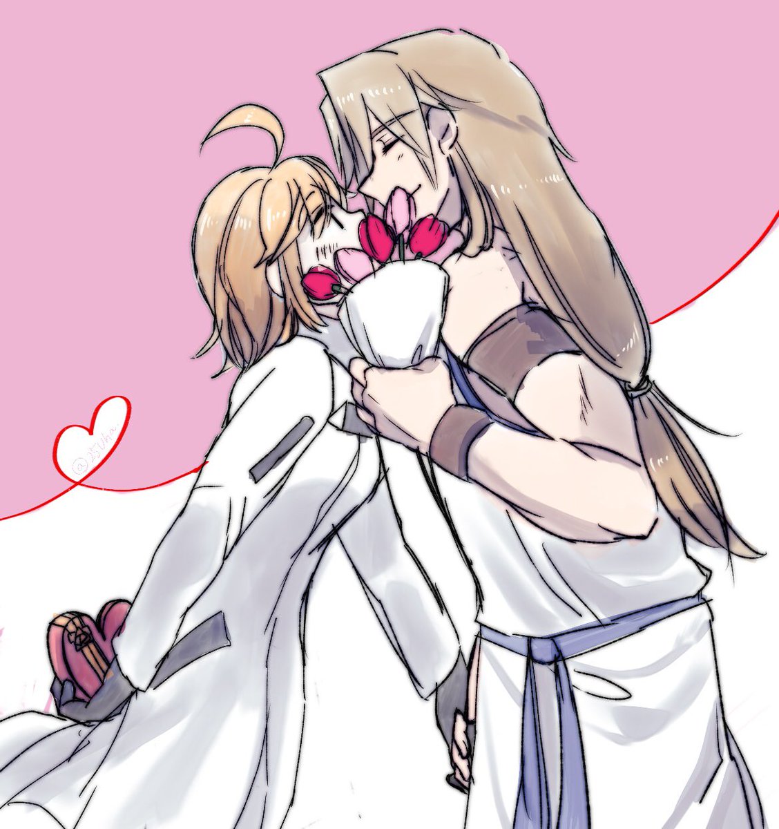 またも10分過ぎたけども! お題「バレンタイン」 海外は男性から女性へプレゼントを贈ることが多いとかで「フラワーバレンタイン」なるものをここ最近で知った。 先生はバラというよりチューリップとか可愛い花似合いそう!! #ケイぐだ子ワンドロライ