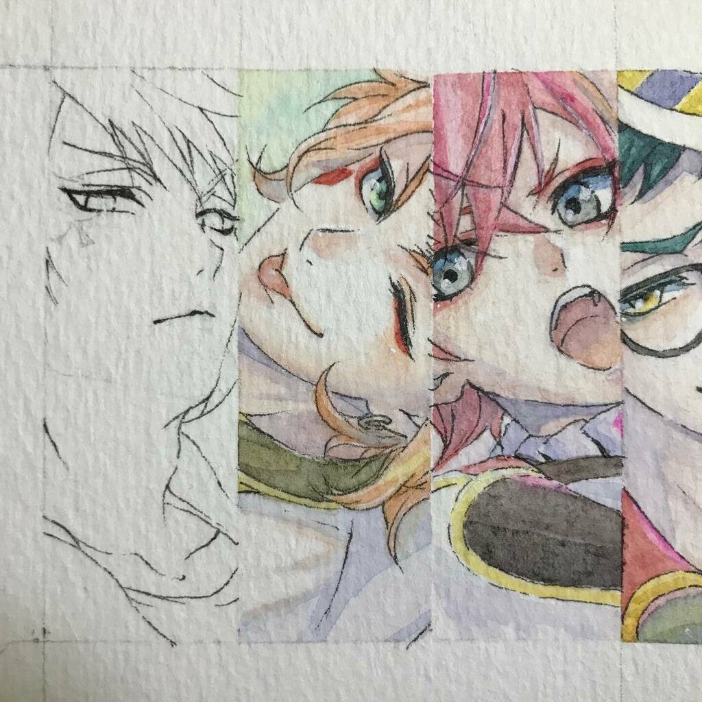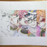 #ツイステッドワンダーランド #ツイステ #ツイステイラスト #ハーツラビュル寮 #リドルローズハート #トレイクローバー #ケイトダイヤモンド #エーストラッポラ #デューススペード やぁっと出来た! もう...無理...←🤣 #凸がき #スケッチブック #模写修行 #水彩画イラスト