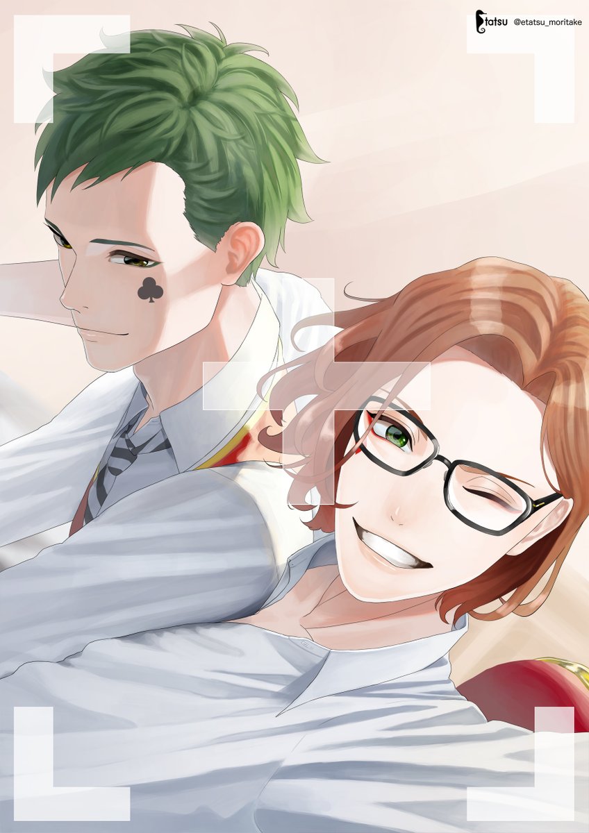 ケイトのハイテンションに付き合ってあげるトレイパイセン。 #ツイステファンアート #トレイ・クローバー #ケイト・ダイヤモンド メイキング動画↓ youtube.com/watch?v=0uSrJy…
