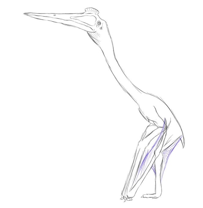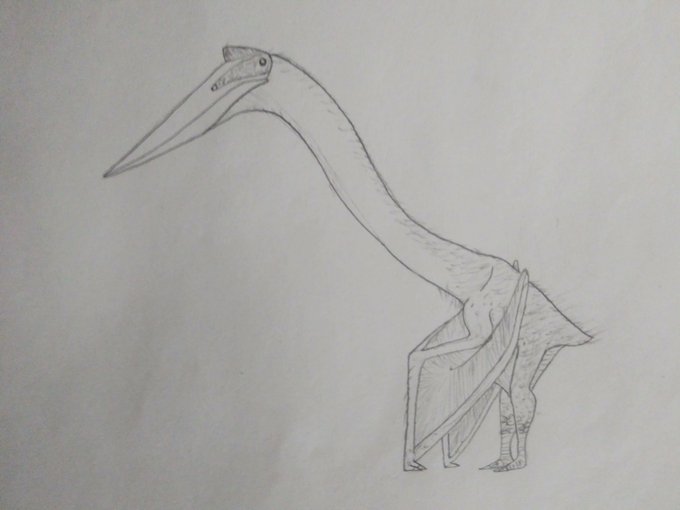 2種のケツァルコアトルスを描きました!!最大級の翼竜の一つでQ.ノルトロピの翼開長は10mに達したとされています。 そして以前より知られていた小型種は先ごろ、Q.ラウソニとして記載されましたねぇ。 #ケツァルコアトルス #翼竜