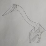 恐竜イニシャルQは #翼竜 にしてみた。 #ケツァルコアトルス です。空をとぶ生き物史上最大級おおきいです。翼開長10m以上、これは小型飛行機をこえる。ケツァルコアトルスの頭文字をまちがえてKと思っていましたので、下書きはとても前にかいてありました。#quetzalcoatlus #古生物 #イラスト