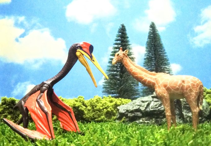 #おもちゃ撮影会 お題「おもちゃ フリー」 史上最大級の翼竜、ケツァルコアトルスが地上に降り立った時、その全高はキリンとほぼ同じです。 しかし、その体重は、キリンが最大約2トン弱も有るのに対し、ケツァルコアトルスは諸説有りますが、重く見積もっても推定250キロです。 #ケツァルコアトルス
