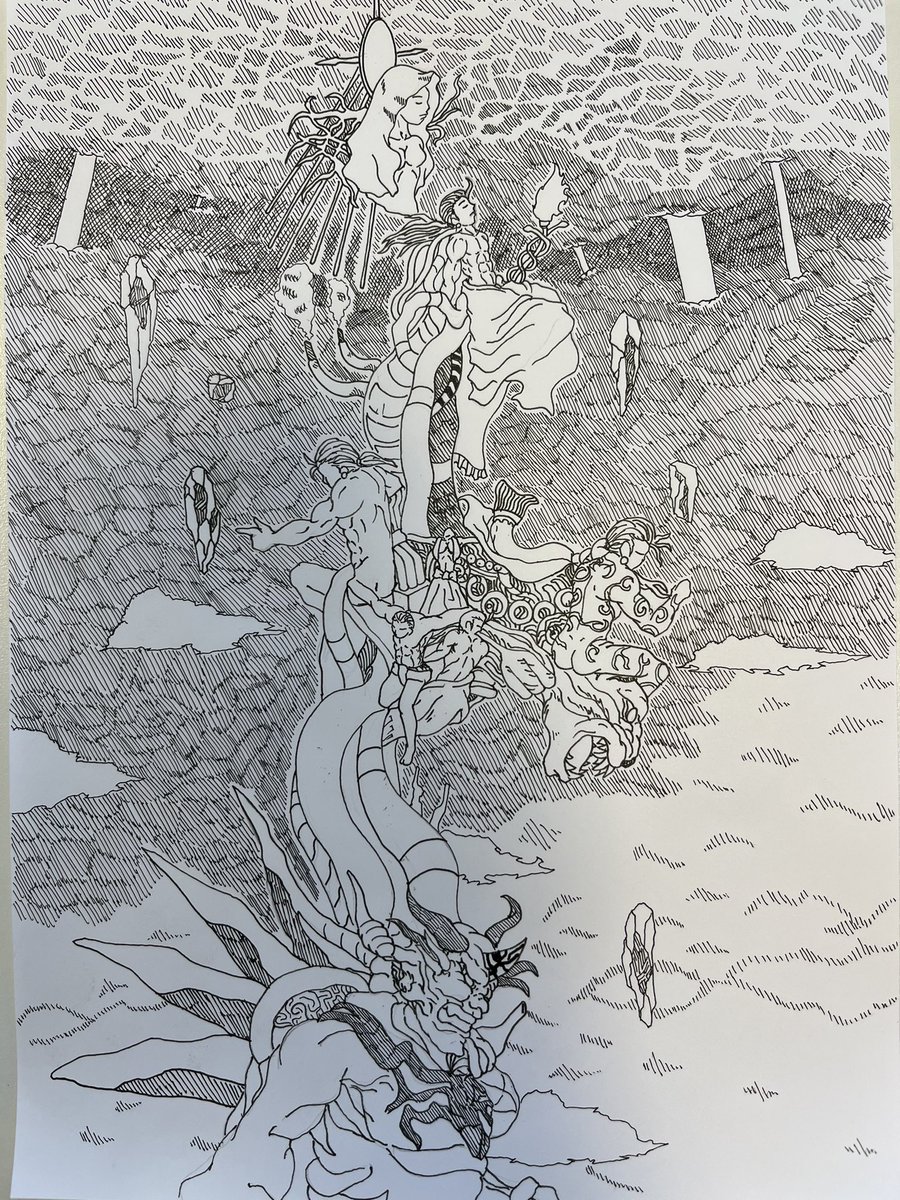 #津島善子生誕祭2022 「#ラブライブサンシャイン 」より、#堕天使ヨハネ こと、#津島善子 たそ。 去年の中の人の生誕祭で描いた絵を修正した絵。 #FF6 #ケフカ 戦のパロディ。 「命…夢…希望…どこから来てどこへ行く?そんな物は…この私が破壊する‼︎」 #津島善子誕生祭2022 #イラスト