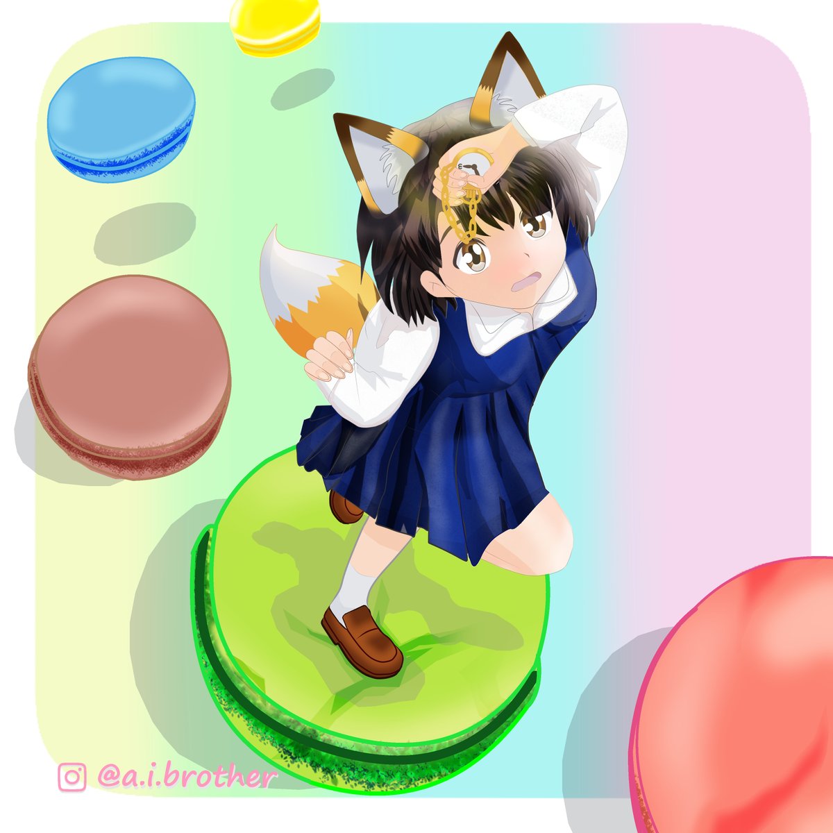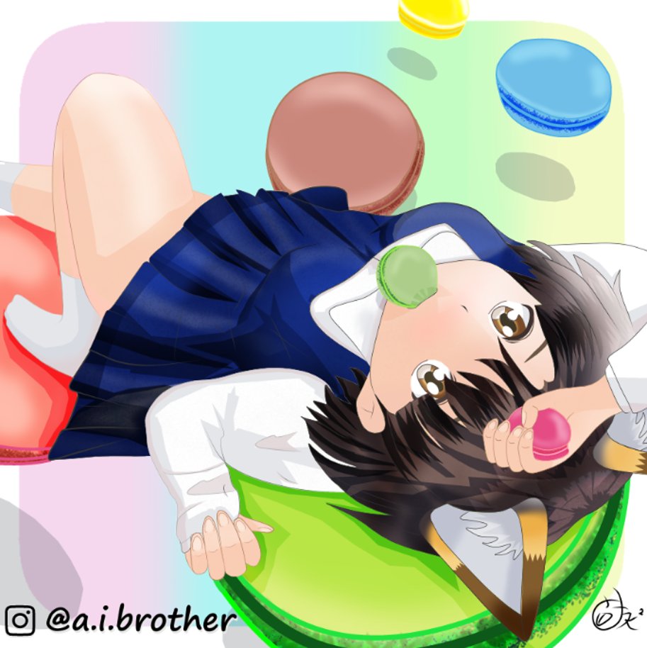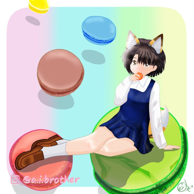 マカロンを与えると大人しくなる♡ マカロン大好き♡! I love macaroons! ¡Me encantan los macarons! #manga #絵柄が好みって人にフォローされたい #ケモノミミ