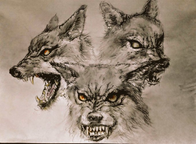 【ケルベロス】🐺🐺🐺 リアル(SNSじゃないよ)でどぎつい悪口を聞かされたら、自分関係ないのに疲れて引きずってました。 週末に掛けてゆっくり皆さまのツイート回りますね🐰🍀 ♡・RTいつもありがとうです🐰❤️ #ケルベロス #イラスト #illustraion #みんなで楽しむTwitter展覧会
