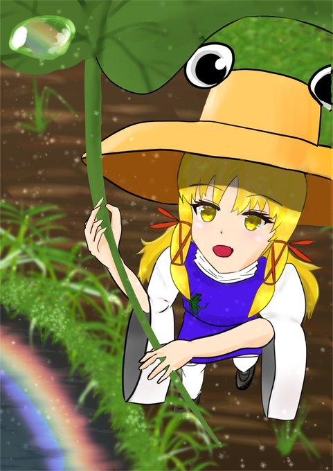 #東方project #東方風神録 #洩矢諏訪子 #ケロちゃん #ミシャグジさま #イラスト #良くなったと思ったらRT 全力出しきったと思ったけども…目の比率と髪を直してみたら良くなったぞ💦 ←修正後 修正前→