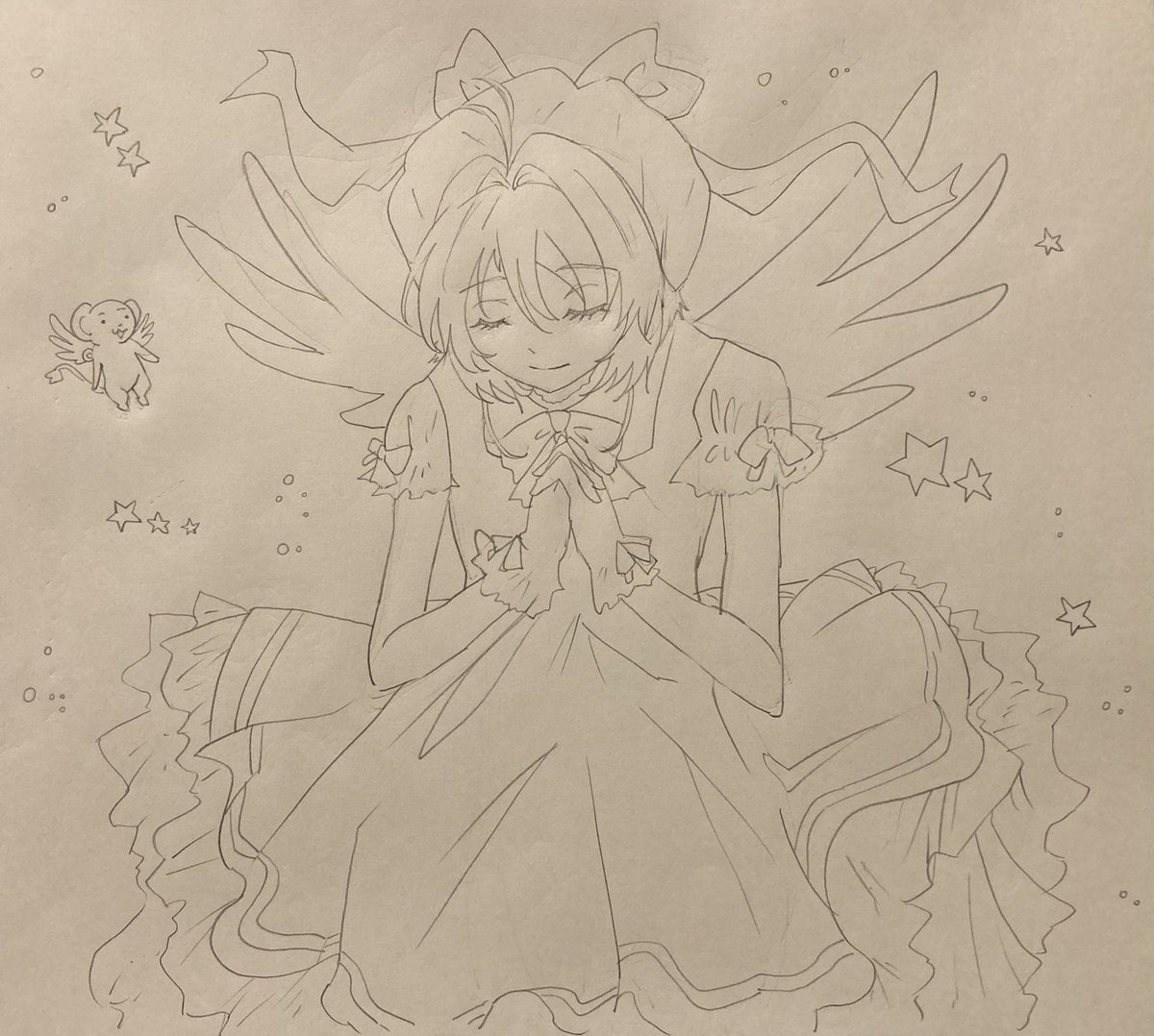 今日は凄く筆が乗った〜❤❤❤このコスチューム描いてみたかったんだよね〜✨ #カードキャプターさくら #木之本桜 #ケロちゃん #clamp2022 #アナログ絵を流してアナログ民を増やそう #デフォルメ #コピックイラスト #木之本桜生誕祭2022 #イラスト好きな人と繋がりたい