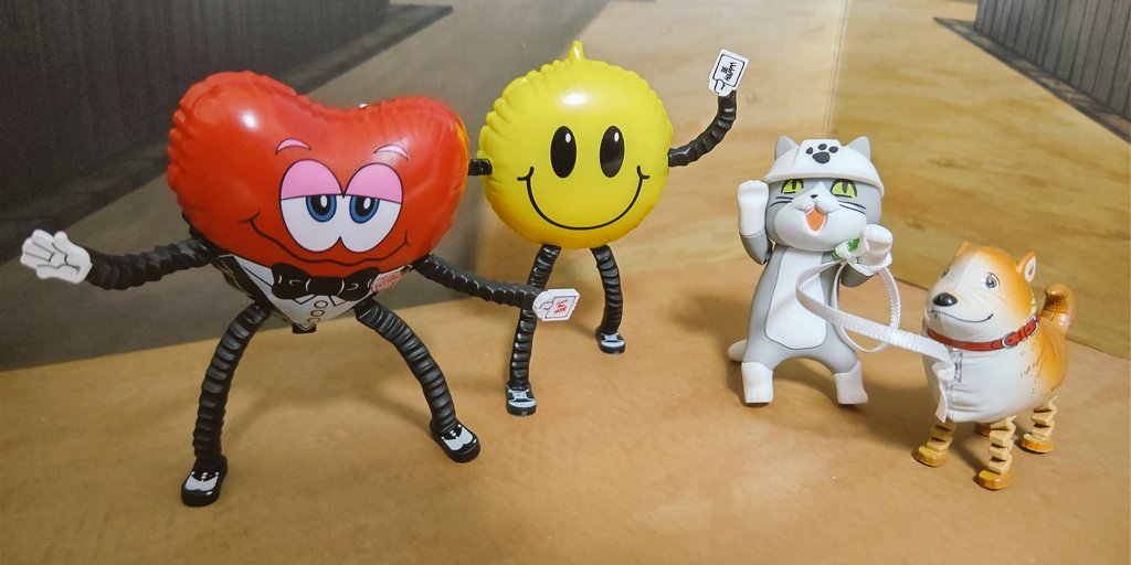 恒例の、仕事猫とのサイズ感 ワンコはかなりイイカンジ💕 🙂と♥️は、ちょっと大きいかな。 みんな自立してくれる! 重さ的にはさほど変わりなく、若干ワンコが軽いかなって感じ。 ブラインドだから選べんけど。😅 #仕事猫 #ケンエレスタンド #バルーンミニチュア #オモ写 twitter.com/kira_kura/st…