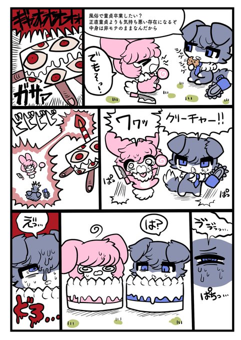 #1日1枚 1615日目。 🐰あっ!下半身がケーキになりかけてるよ! #ケーキ化 #イラスト #創作百合 #秋の創作クラスタフォロー祭り #絵描きさんと繋がりたい #創作クラスタさんと繋がりたい