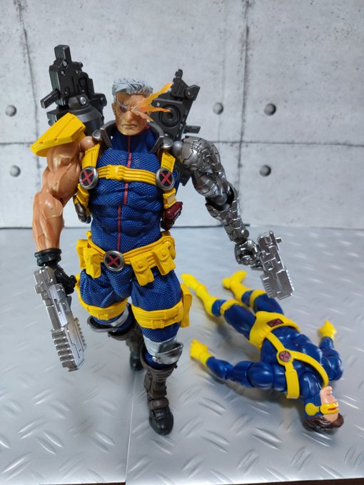 #夜のフィギュア撮影会 11/10『銃』遅刻 #楽しく玩具撮影会 『とりあえず、1枚ツイート』 #楽しく玩具撮影中 11月お題『撮って出し』 久しぶりの #ケーブル さんフル装備 ノールックショットでサイクをKO #オモ写 #アメイジングヤマグチ